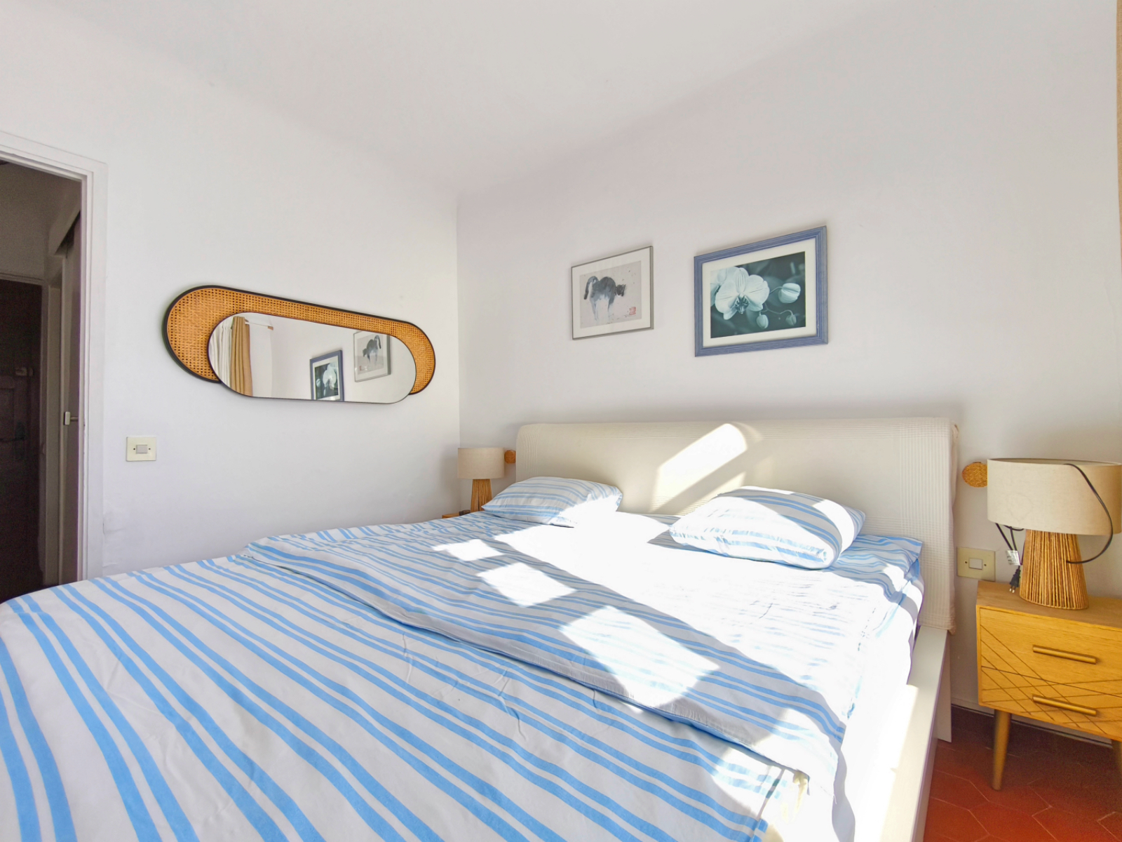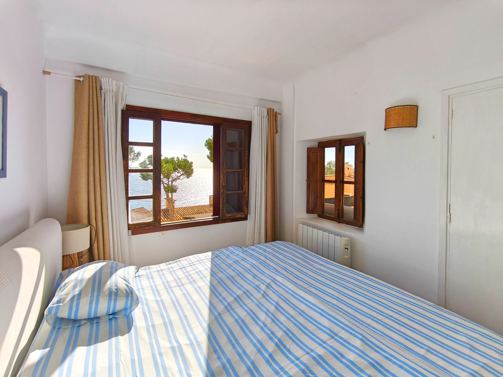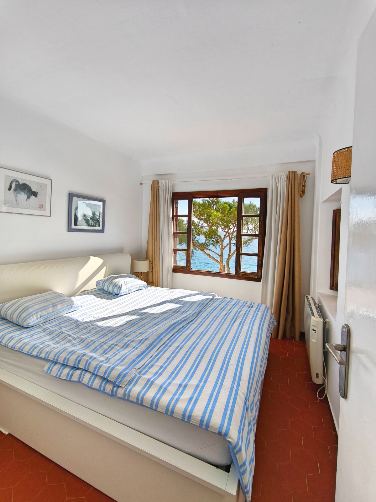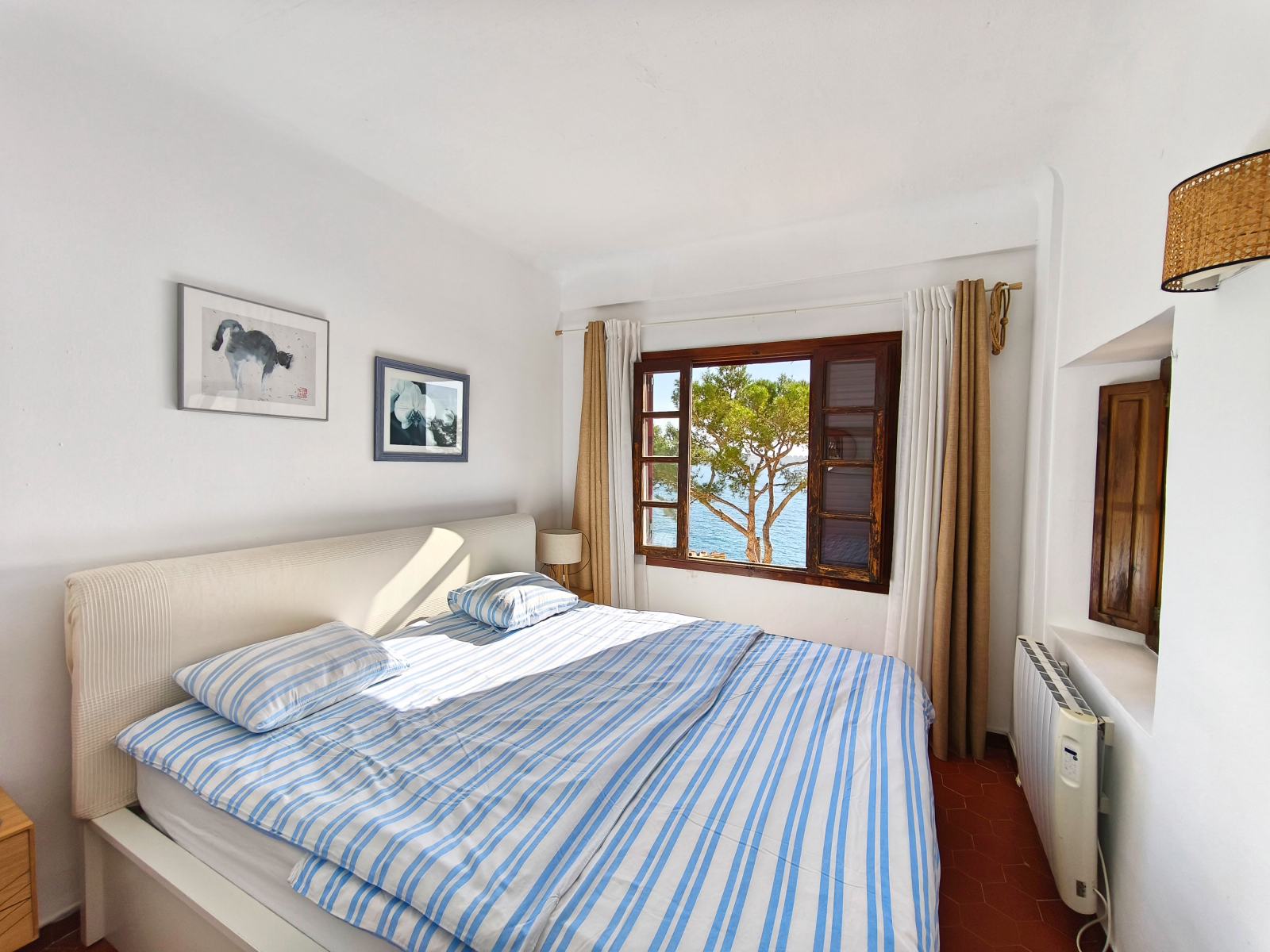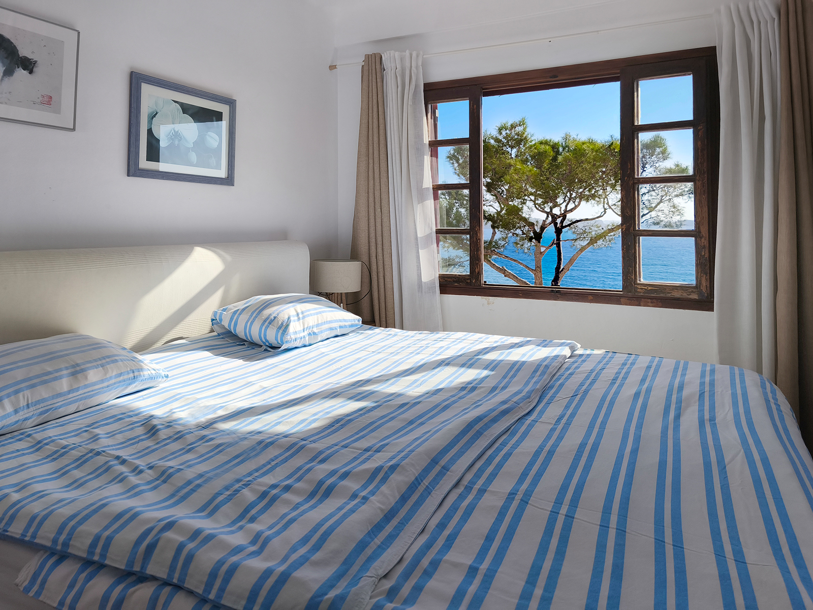 Das gemütliche Schlafzimmer mit Doppelbett schenkt Ihnen ebenfalls den fantastischen Blick auf das glitzernde Mittelmeer. Die Lage im 1. Stock ist ideal für Gäste, die nur wenige Stufen zurücklegen möchten.