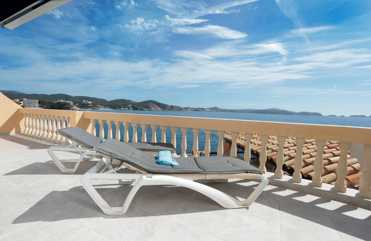 Die herausragende Lage setzt sich in der näheren Umgebung fort: Sowohl die herrlichen Sandstrände von Paguera als auch die malerische Kiesbucht von Cala Fornells sind in einem angenehmen Spaziergang zu erreichen. Dasselbe gilt für den lebendigen Ortskern mit seiner vielfältigen Auswahl an Restaurants und Geschäften.
