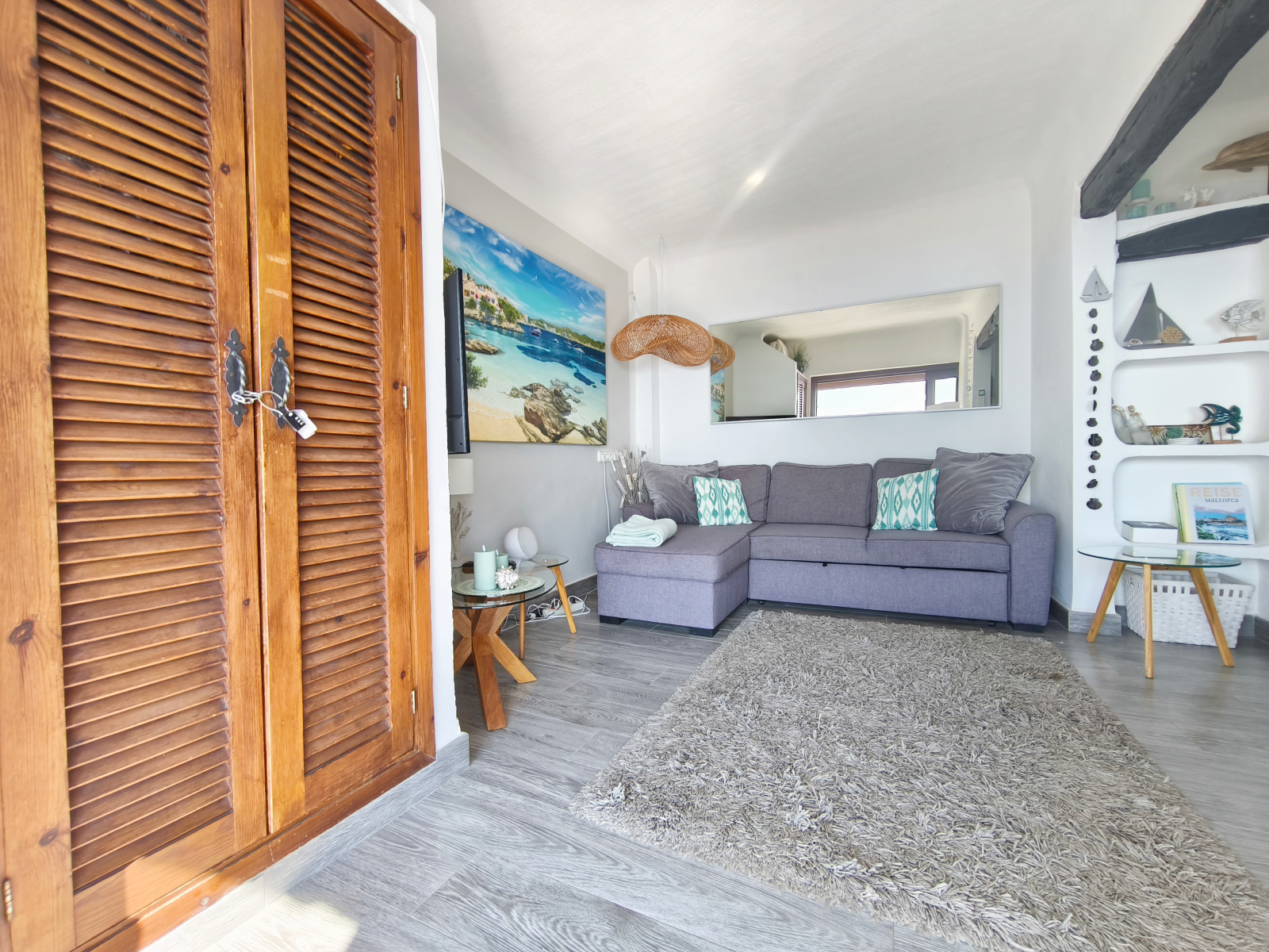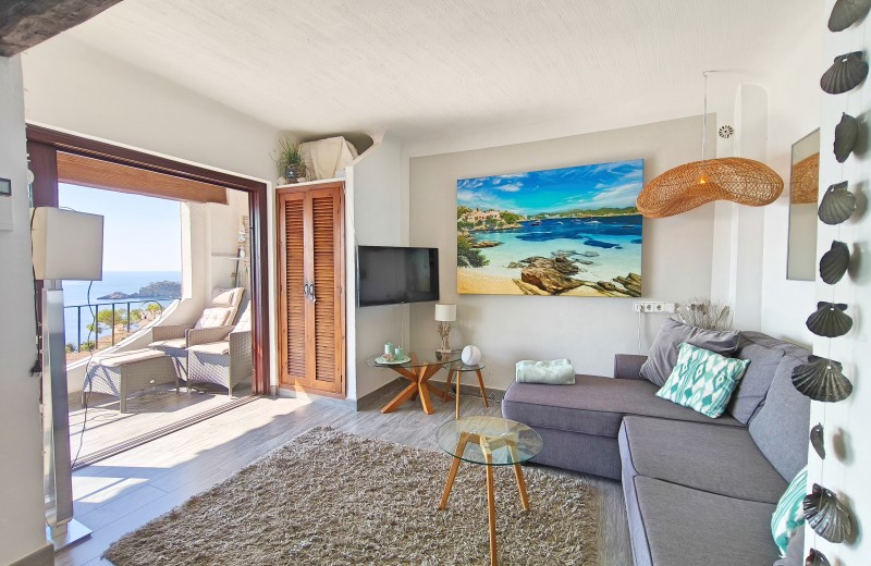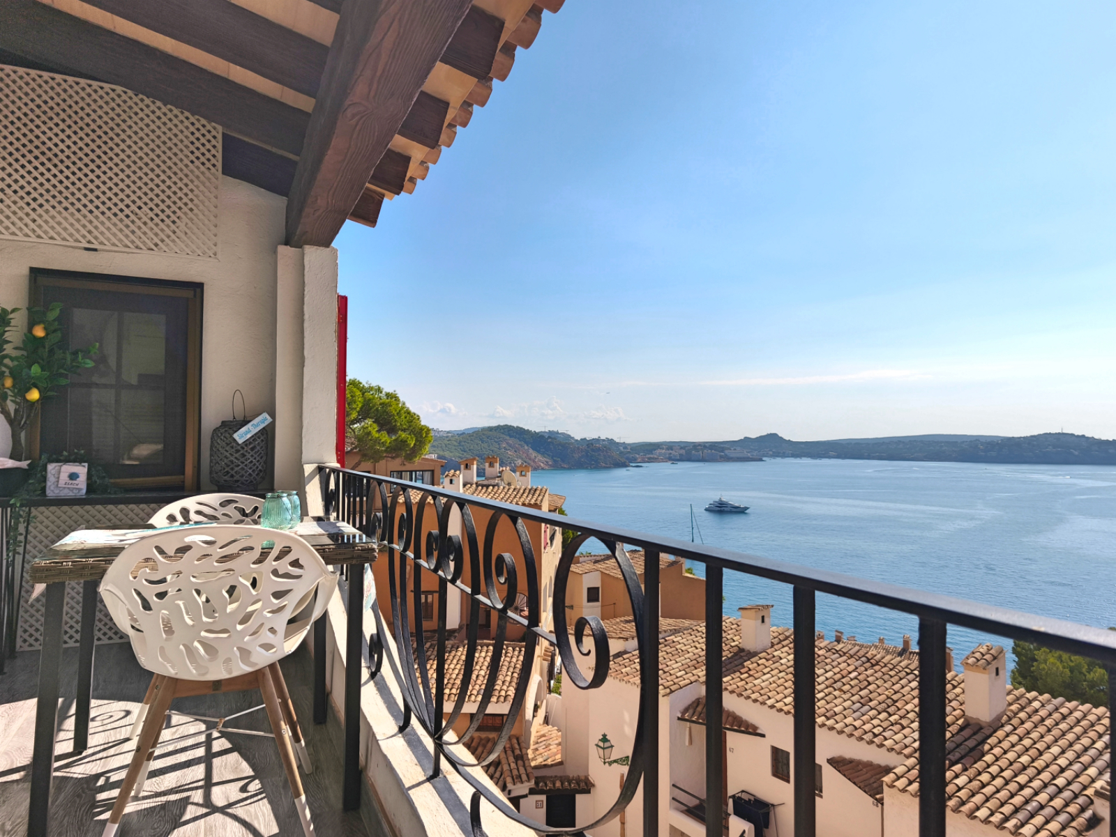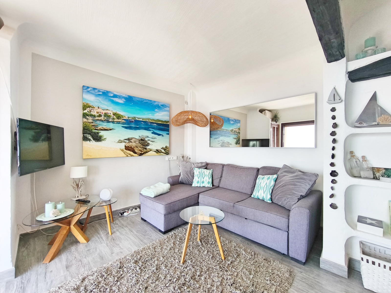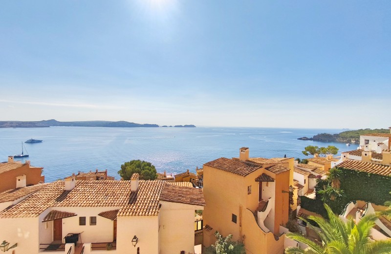 Genießen Sie unbeschwerte Urlaubstage in dieser lichtdurchfluteten Ferienwohnung in der beliebten Region Cala Fornells. Das Highlight der Immobilie ist der spektakuläre Blick über das offene Meer und die malerische Bucht, der sich Ihnen von der Terrasse sowie aus den meisten Räumen bietet.