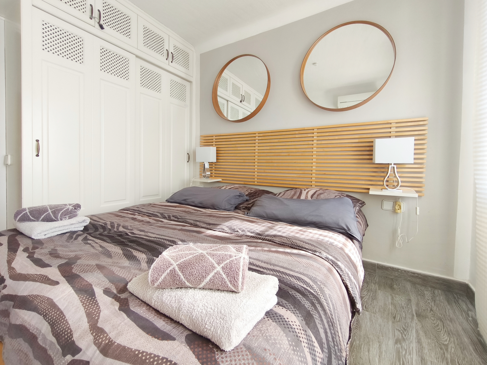 Die Wohnung besticht durch einen offenen, modern und geschmackvoll eingerichteten Wohn- und Essbereich. Eine Theke trennt diesen fließend von der voll ausgestatteten, offenen Küche. Zur Wohlfühl-Oase runden ein helles, freundliches Schlafzimmer mit Doppelbett und ein modernes Duschbad mit bodentiefer Dusche das harmonische Gesamtbild ab – auch hier starten Sie mit einem fantastischen Meerblick in den Tag.