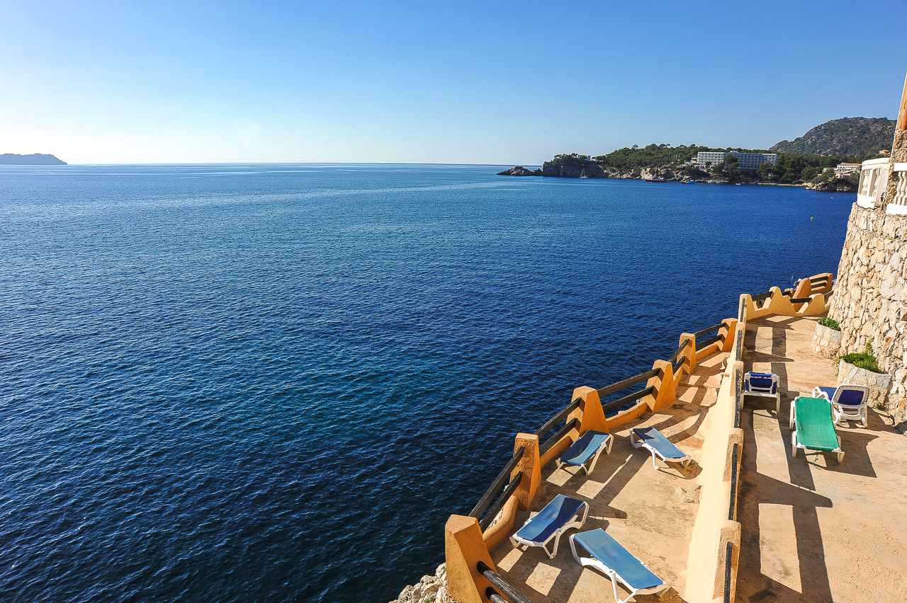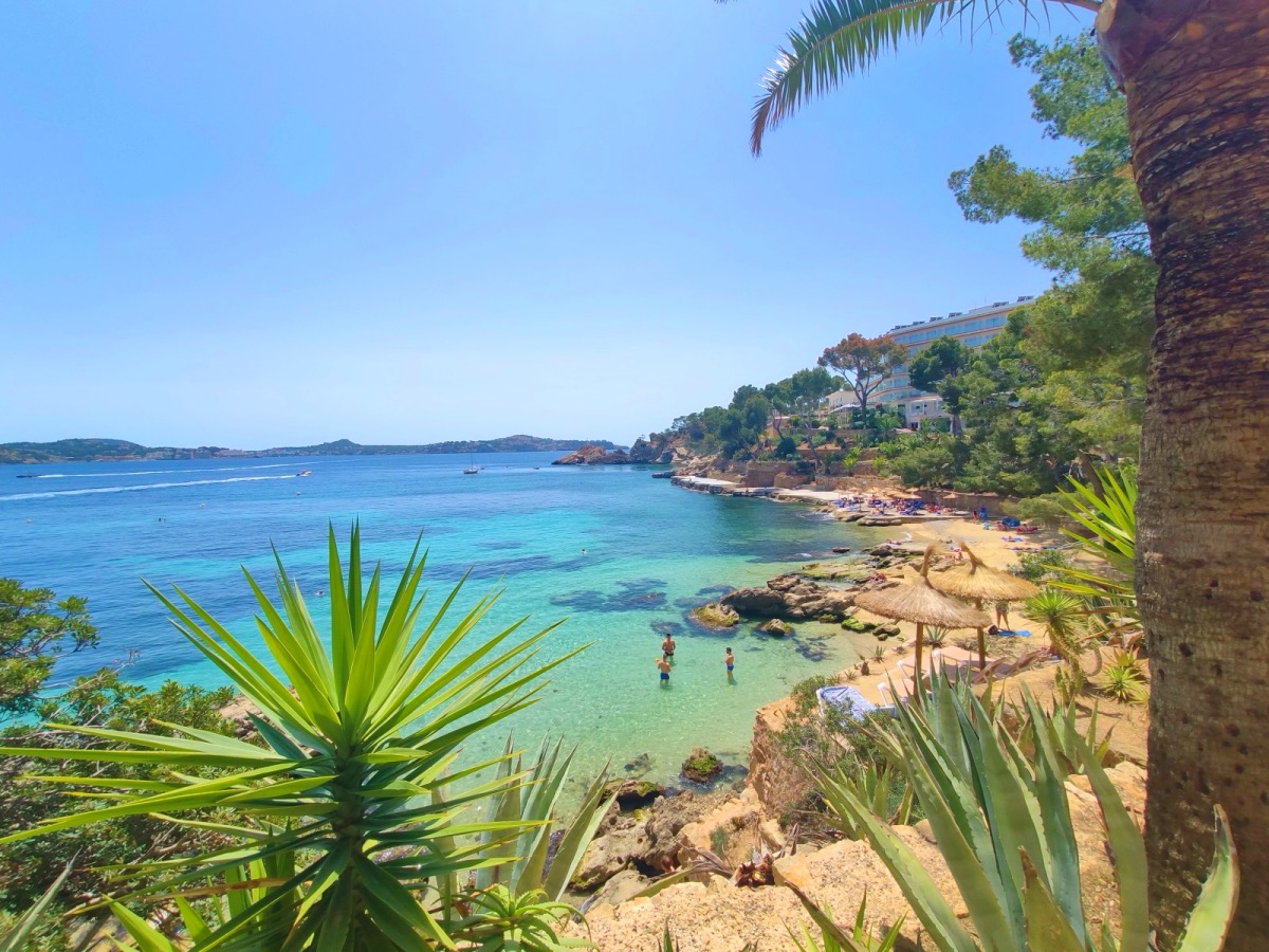 Cala Fornells ist ein ruhiger Ort direkt angrenzend an Paguera. Der Ortskern und die Strände von Paguera sind optimal zu Fuß zu erreichen und bieten alles, was man für einen entspannten Urlaub benötigt. Entlang der Promenade finden Sie zahlreiche Geschäfte, Boutiquen sowie Restaurants und Cafés mit internationaler und lokaler Küche. Auch an den diversen Strandpromenaden findet man viele nette Cafés und Restaurants mit Blick auf das Meer und den davorliegenden Strand. Cala Fornells selbst verfügt über eine kleine Strandbucht mit eher grobem Kies, welche ebenfalls gut zum Schwimmen geeignet ist. Ein Stück finden Sie auf den großen Steinterrassen ebenfalls Platz für ein Sonnenbad. Durch ein Wäldchen gelangt man zu weiteren schönen Kiesbuchten mit herrlich klarem Wasser.
