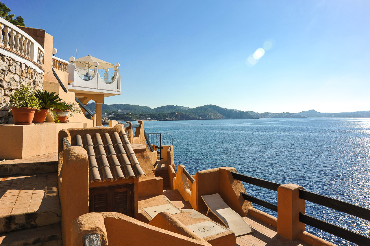 Diese gemütlich eingerichtete Ferienwohnung im begehrten Cala Fornells bezaubert durch ihre traumhafte Lage fast direkt am Meer und eine großzügige Terrasse mit atemberaubendem Blick über die Bucht. Nur wenige Meter über dem Meer gelegen, genießen Sie von nahezu jedem Raum der Wohnung den malerischen Ausblick auf das Wasser.