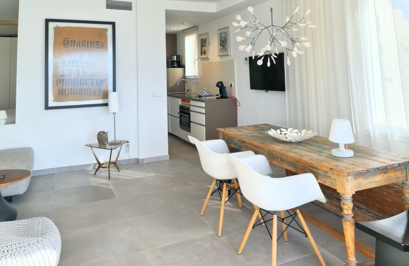 Das helle und freundliche Apartment ist intelligent geschnitten: Hinter dem Wohnbereich befindet sich das Doppelschlafzimmer, das durch ein blickdichtes Schiebeelement flexibel vom Wohnraum getrennt werden kann. Bei geöffneter Verbindung starten Sie Ihren Tag mit dem unvergesslichen Anblick des Meeres – direkt vom Bett aus. Abgerundet wird das Angebot durch eine voll ausgestattete, moderne Küche und ein ebenso zeitgemäßes Duschbad.