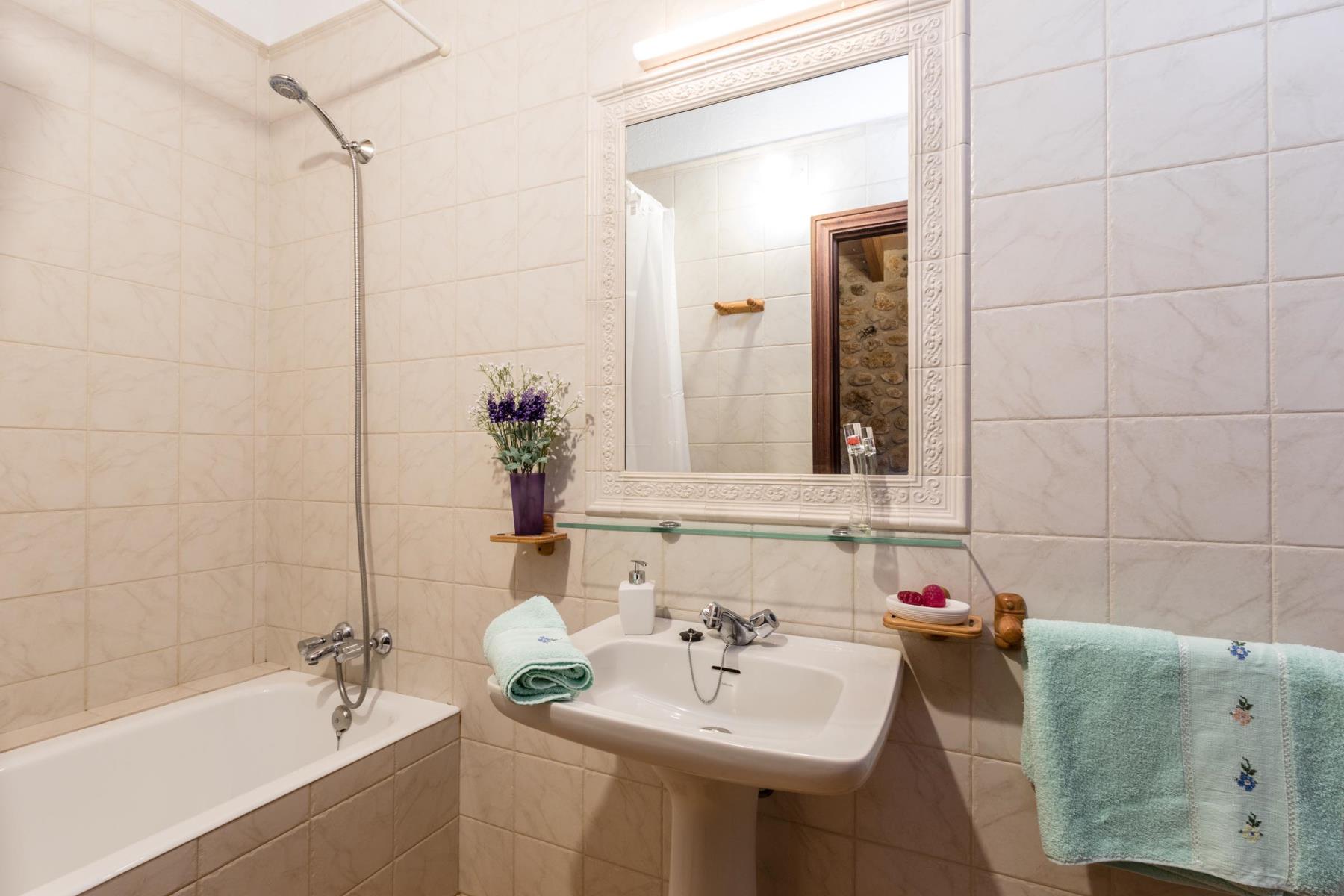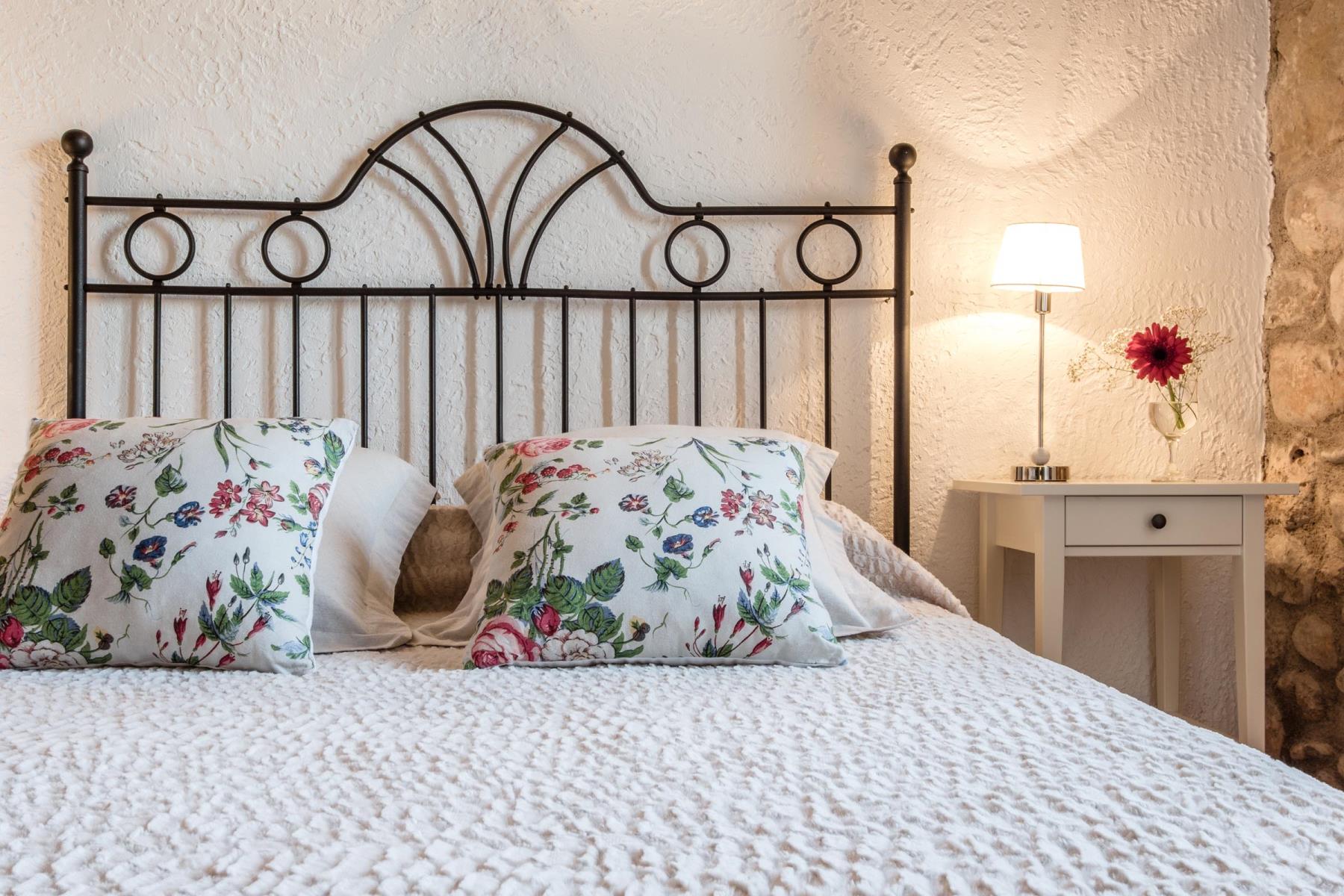 Das zweistöckige Haus besteht aus einem kleinen Wohnbereich mit einem bequemen Sofa und Satelliten-TV. Die große Einbauküche ist bestens ausgestattet. Hier befindet sich auch der zentrale Esstisch des Hauses. In der unteren Wohnebene gibt es außerdem ein Schlafzimmer mit Doppelbett und ein Duschbad. In der ersten Etage besteht aus einem Doppelschlafzimmer und einem Zweibettzimmer, die sich ein Badezimmer mit Badewanne teilen. Beide Schlafzimmer haben einen schönen Blick auf das Dorf Buger und die umliegende Landschaft.